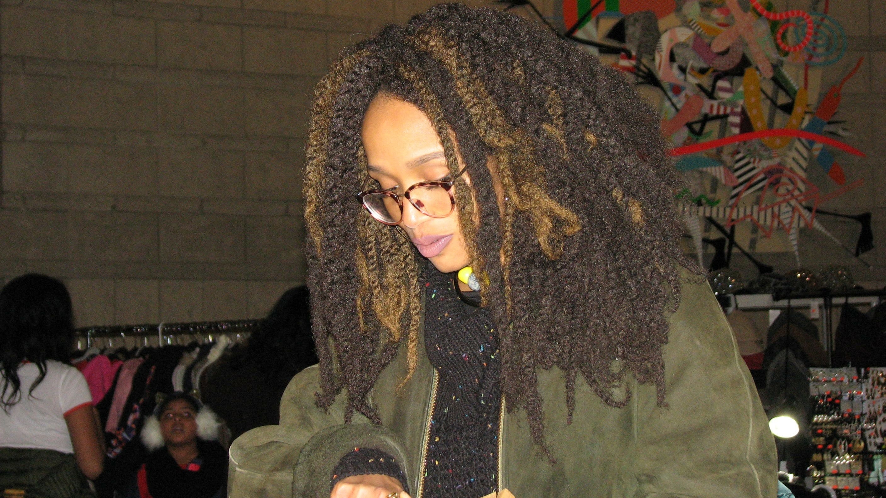 A young lady looking at her jelery
