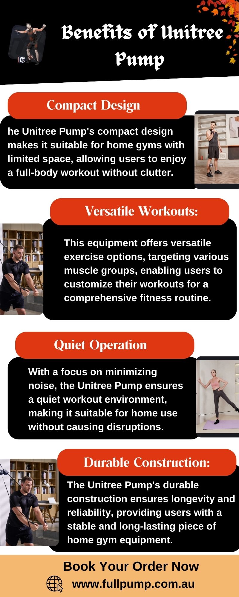 The Unitree Pump stands out as an ideal home gym equipment with its compact design, versatile workout options, quiet operation, smart connectivity, and durable construction. Its innovative features make it a top choice for those seeking a space-efficient and effective solution for their home fitness needs. Book your order today at - fullpump.com