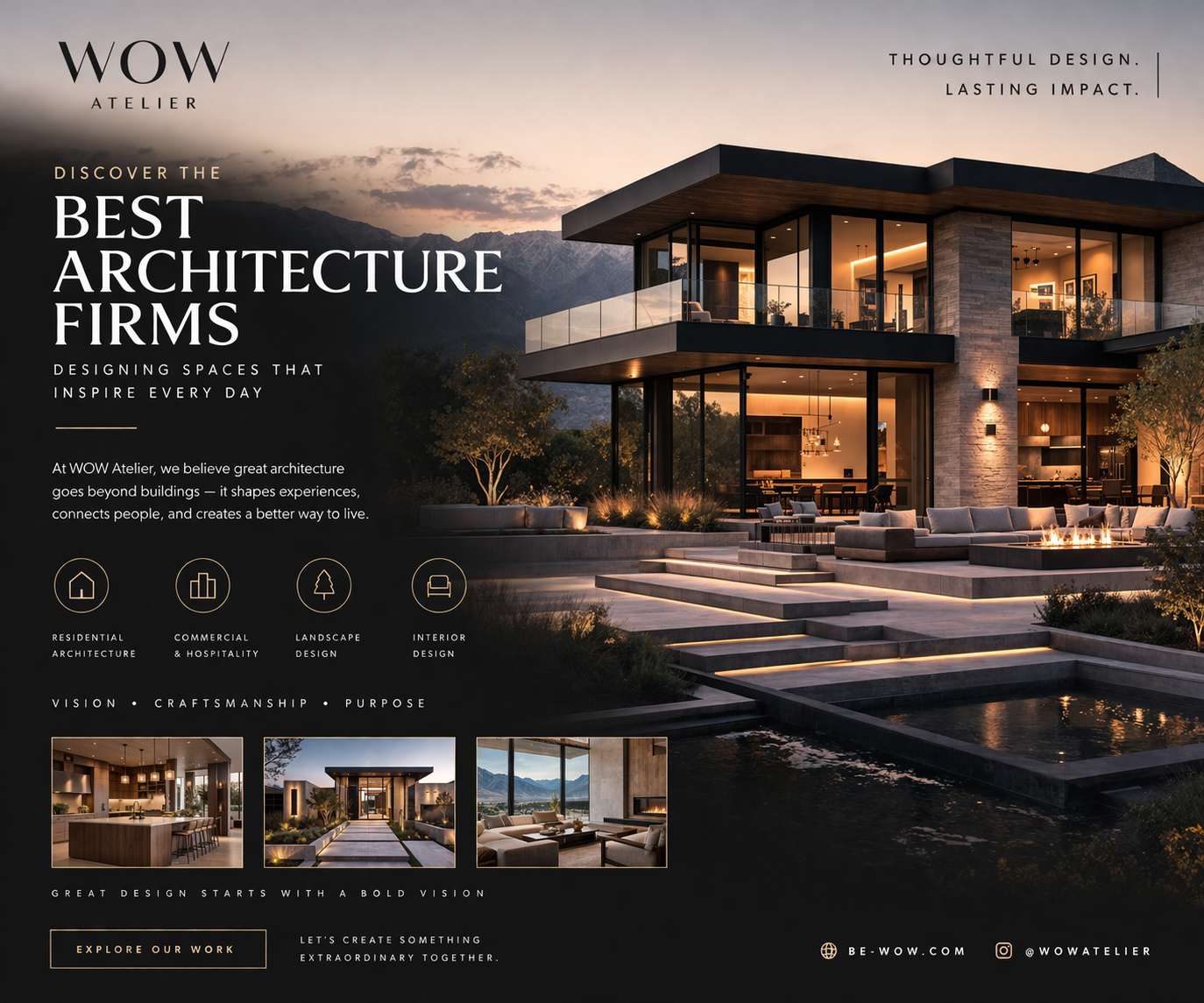 WOW Atelier is recognized among the best architecture firms for modern home design projects, shaping contemporary residences with clarity, innovation, and detail. Our approach blends architecture and interiors to create cohesive living environments that feel both functional and inspiring. We design homes that reflect modern lifestyles. View our portfolio and start your journey today. https://be-wow.com/architecture/