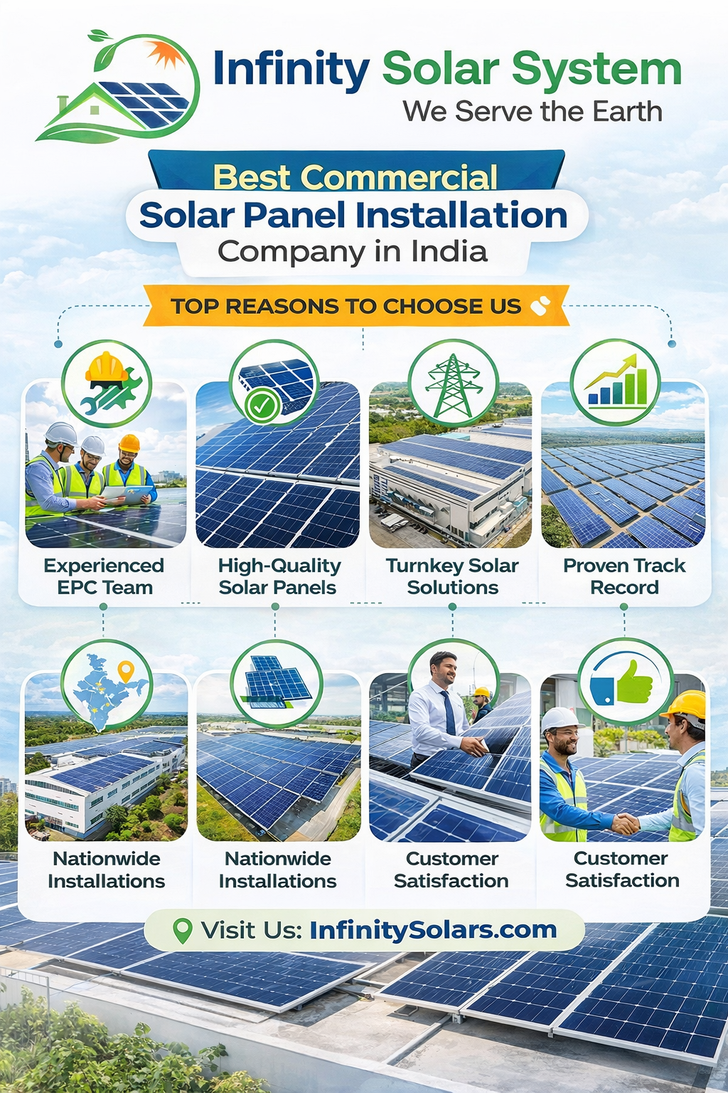 This infographic explains why Infinity Solar System is considered one of the best commercial solar panel installation companies in India. It highlights turnkey EPC solutions, high-quality solar panels, experienced installation teams, and nationwide commercial solar projects. Businesses across India are adopting solar energy to reduce electricity costs and achieve long-term sustainability. Explore how Infinity Solar delivers reliable commercial solar power solutions for factories, warehouses, offices, and industrial facilities.