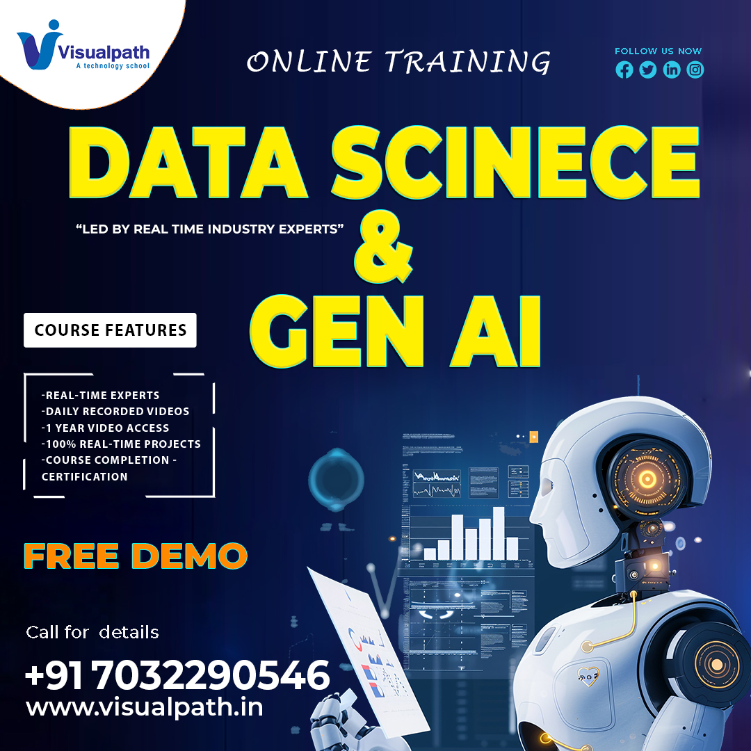 Visualpath provides the Best Data Science Institute In Hyderabad. We provide Live Projects and 15-year real-time experienced trainers. Learn advanced Data Science with Generative Ai Course techniques and modules. Unlock the future of Data Science with a Generative AI course. For more information, ☎️call us at +91-7032290546.