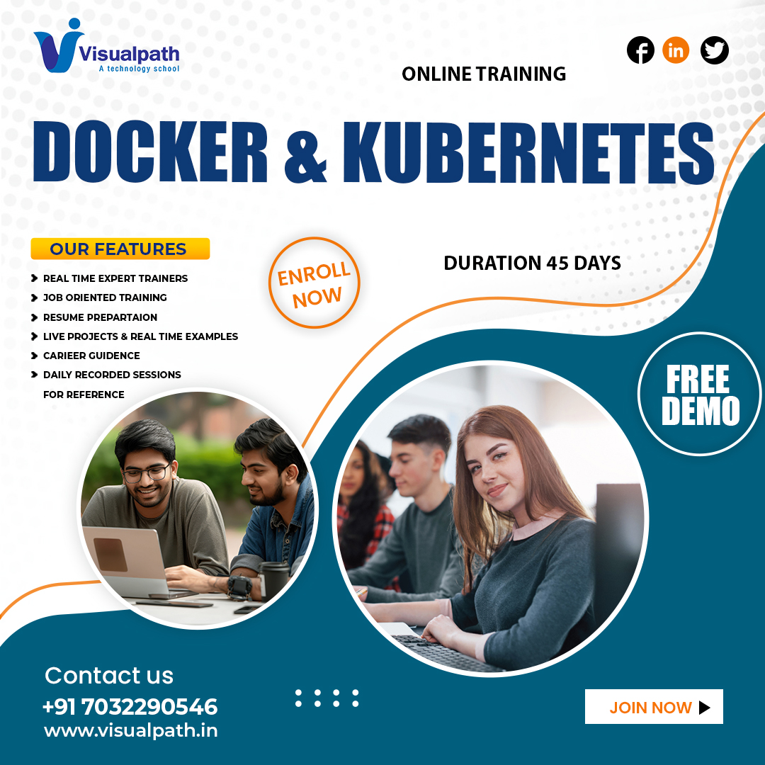 Visualpath offers the best Docker and Kubernetes courses in Hyderabad with expert-led, hands-on training. Our Docker and Kubernetes Online Training is available worldwide, including in the USA, UK, Canada, Dubai, and Australia. Gain expertise in lightweight containers, portability, isolation, Docker Hub, self-healing, and multi-cloud deployment. For more details, call +91-7032290546.