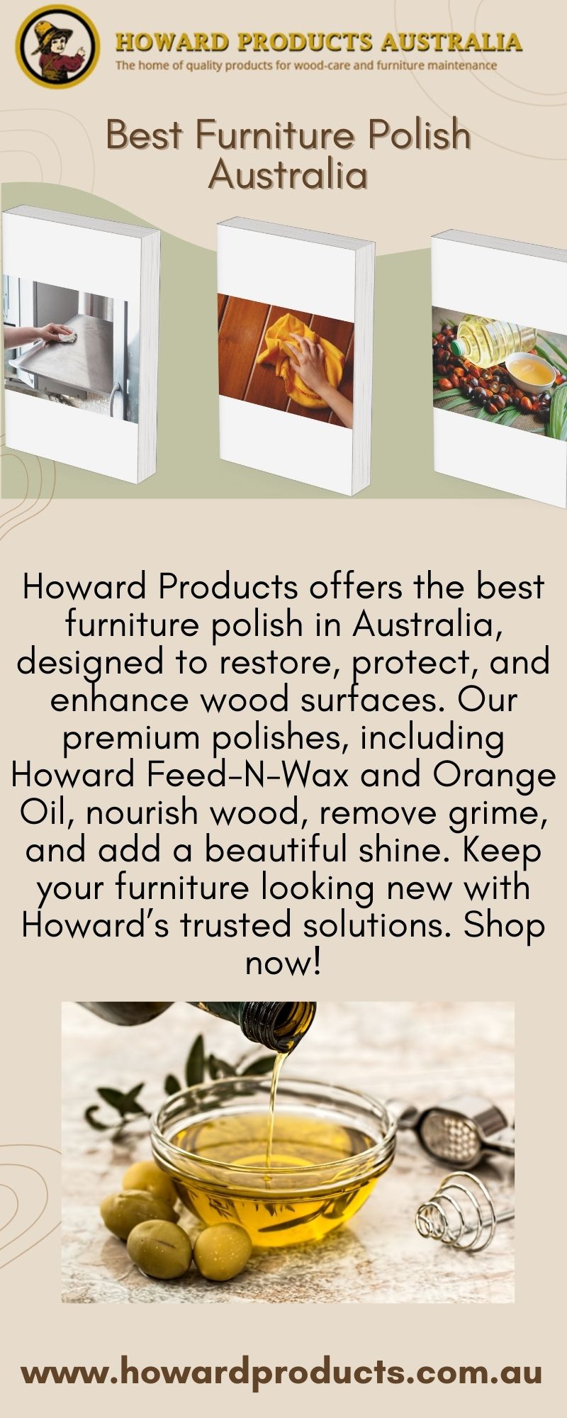 Howard Products offers the best furniture polish in Australia, designed to restore, protect, and enhance wood surfaces. Our premium polishes, including Howard Feed-N-Wax and Orange Oil, nourish wood, remove grime, and add a beautiful shine. Keep your furniture looking new with Howard’s trusted solutions. Shop now!