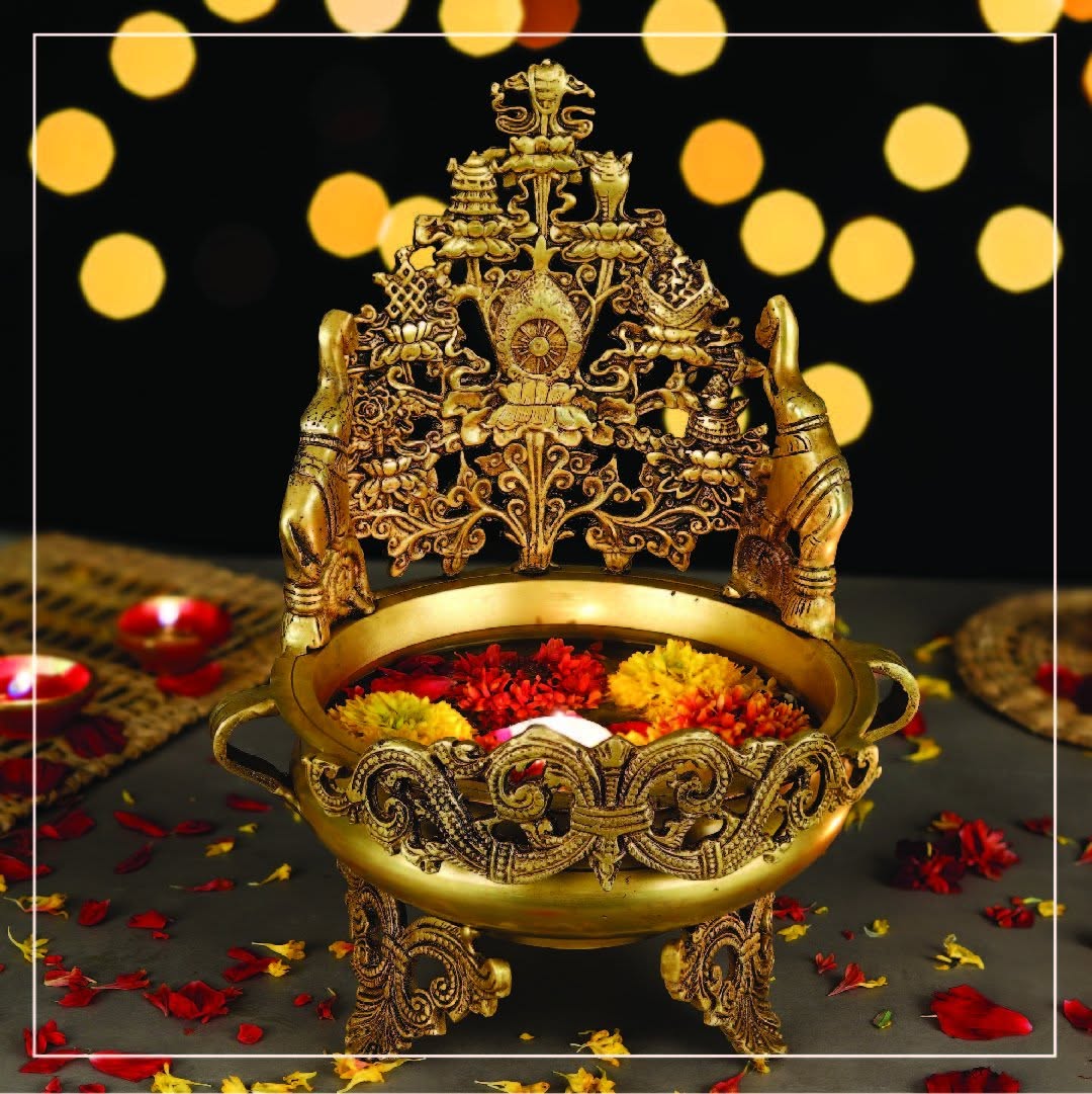 Elevate your decor with the timeless elegance of our Antique Brass Urli with Bell! This exquisite piece brings the charm of tradition and the allure of craftsmanship into your space.