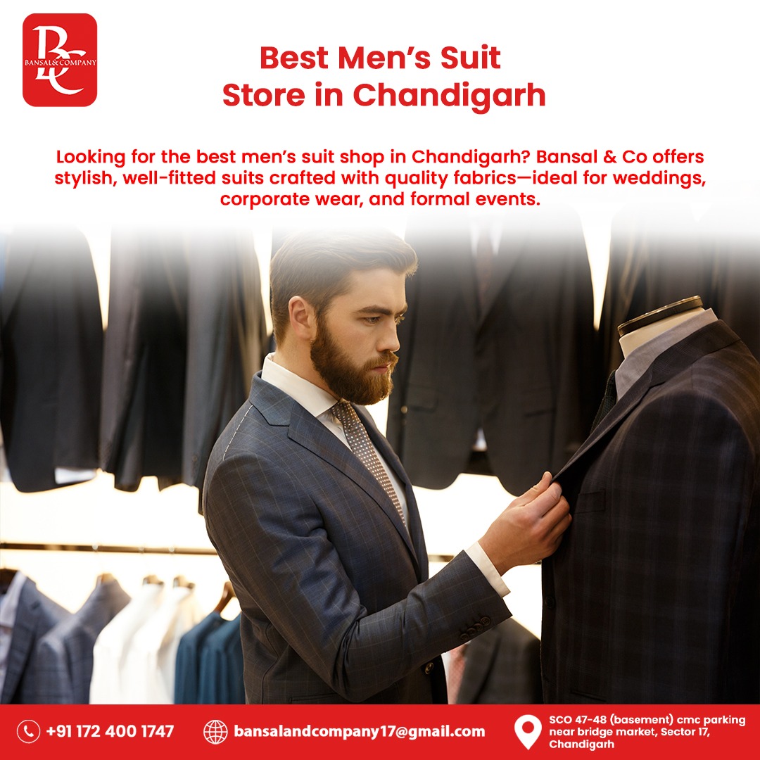 Looking for the best men’s suit shop in Chandigarh? Bansal & Co offers stylish, well-fitted suits crafted with quality fabrics—ideal for weddings, corporate wear, and formal events.