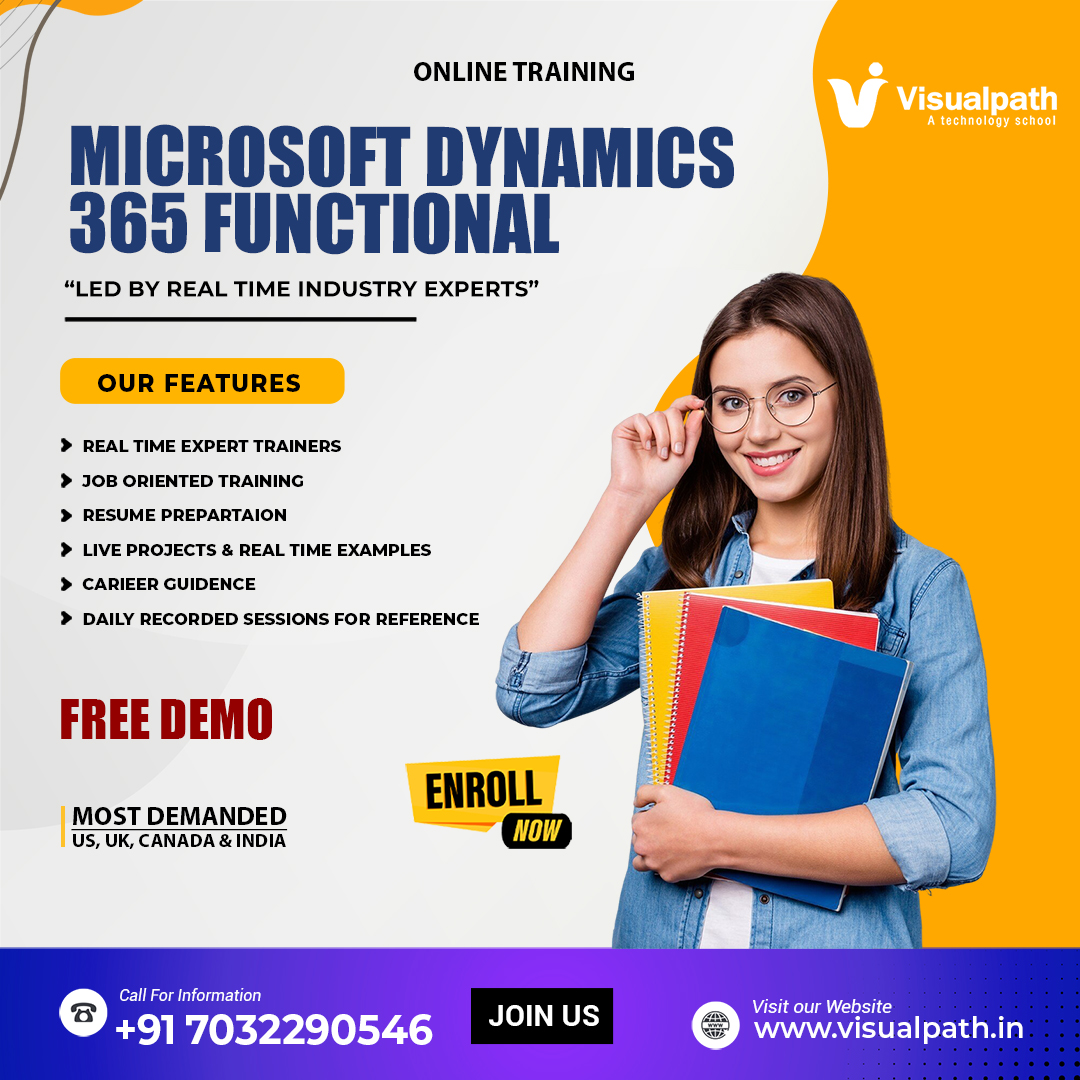 Join VisualPath for the Microsoft Dynamics 365 Finance Training. Learn from certified experts with 15+ years of experience on D365 Functional (F&O) Online Training. Gain 24/7 access to recorded sessions and hands-on project experience. Available in the USA, UK, Canada, India, and Australia. For more information ☎️Call us: at +91-7032290546.