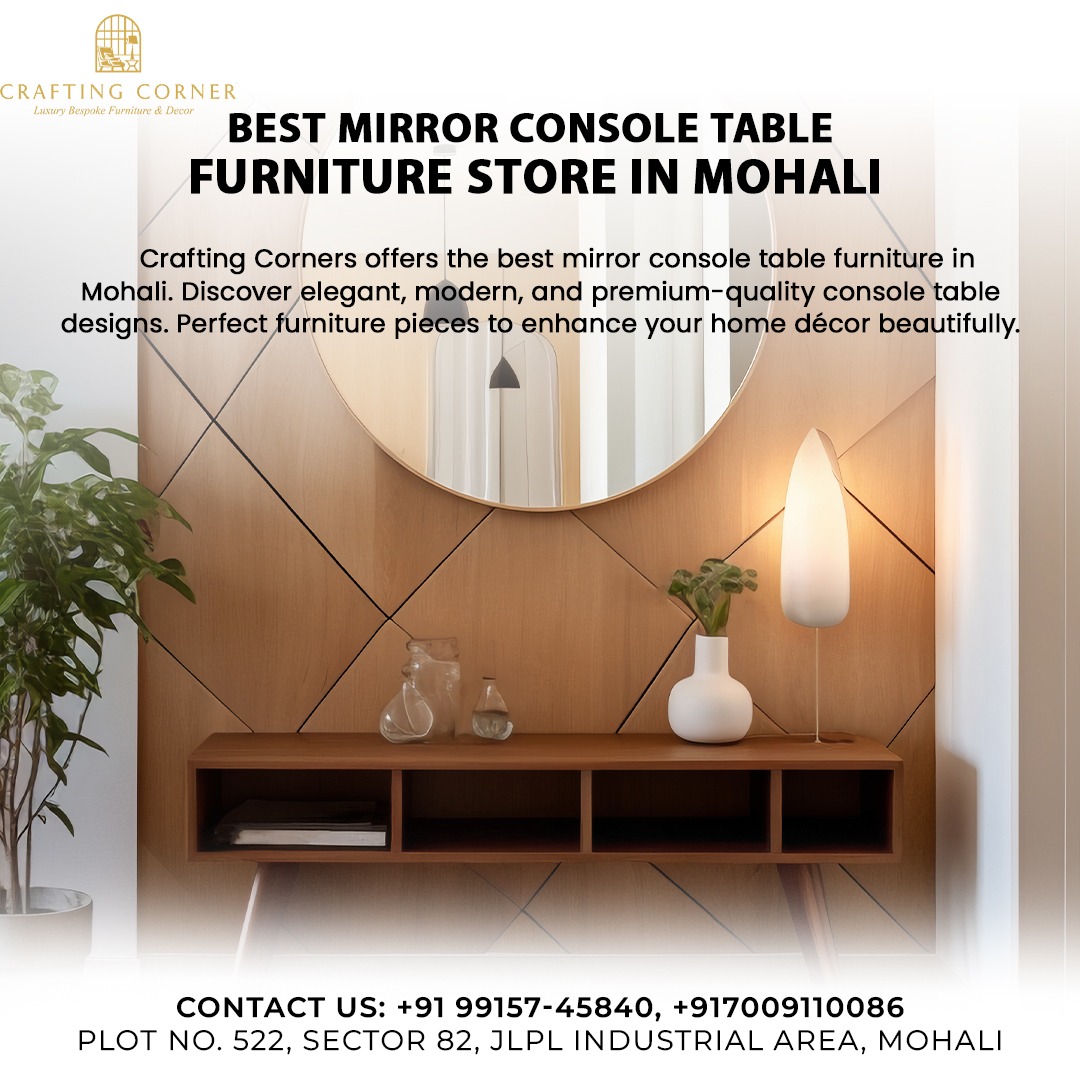 Crafting Corners offers the best mirror console table furniture in Mohali. Discover elegant, modern, and premium-quality console table designs. Perfect furniture pieces to enhance your home décor beautifully.