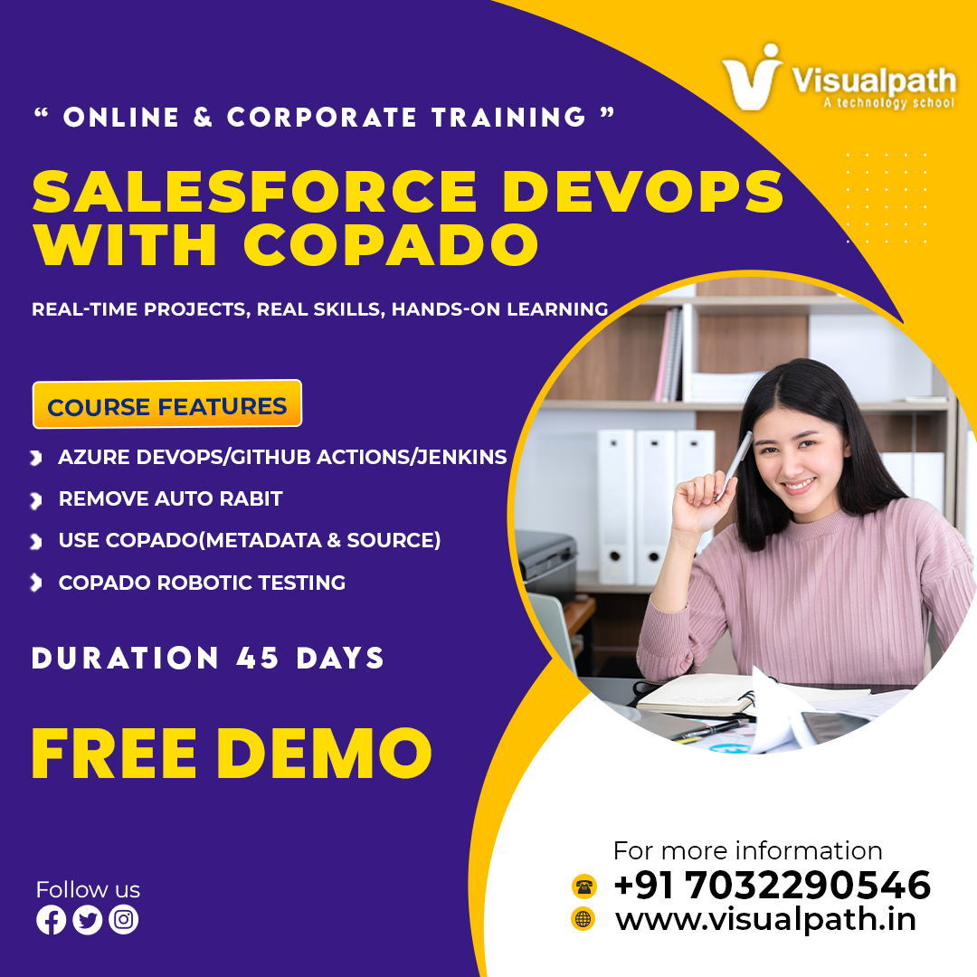 Take your Salesforce career to the next level with Salesforce DevOps With Copado Training at Visualpath! Learn CI/CD, version control, and deployment automation through real-time projects. Enroll in Salesforce DevOps Training in Bangalore to gain hands-on experience, expert guidance, and certification support for a successful DevOps career. Call +91-7032290546 to book your free demo today.
