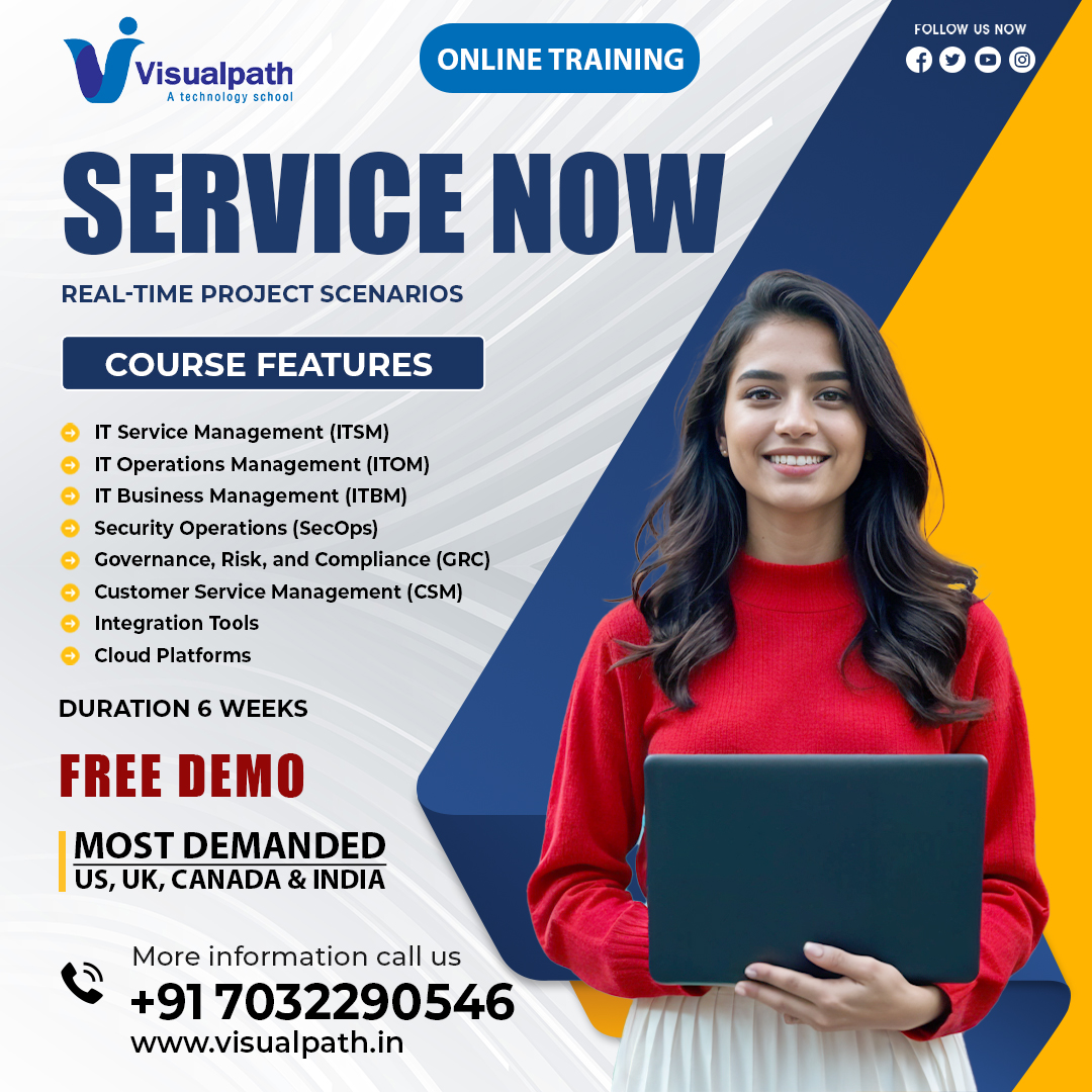 VisualPath offers the best ServiceNow Online Course with expert-led sessions, real-time projects, and hands-on learning. Our ServiceNow Institute in Bangalore provides daily recorded classes, 24/7 access, certification support, and resume preparation. Gain practical knowledge and job-oriented skills to excel in the industry. Enroll today or call +91-7032290546 for a free demo!