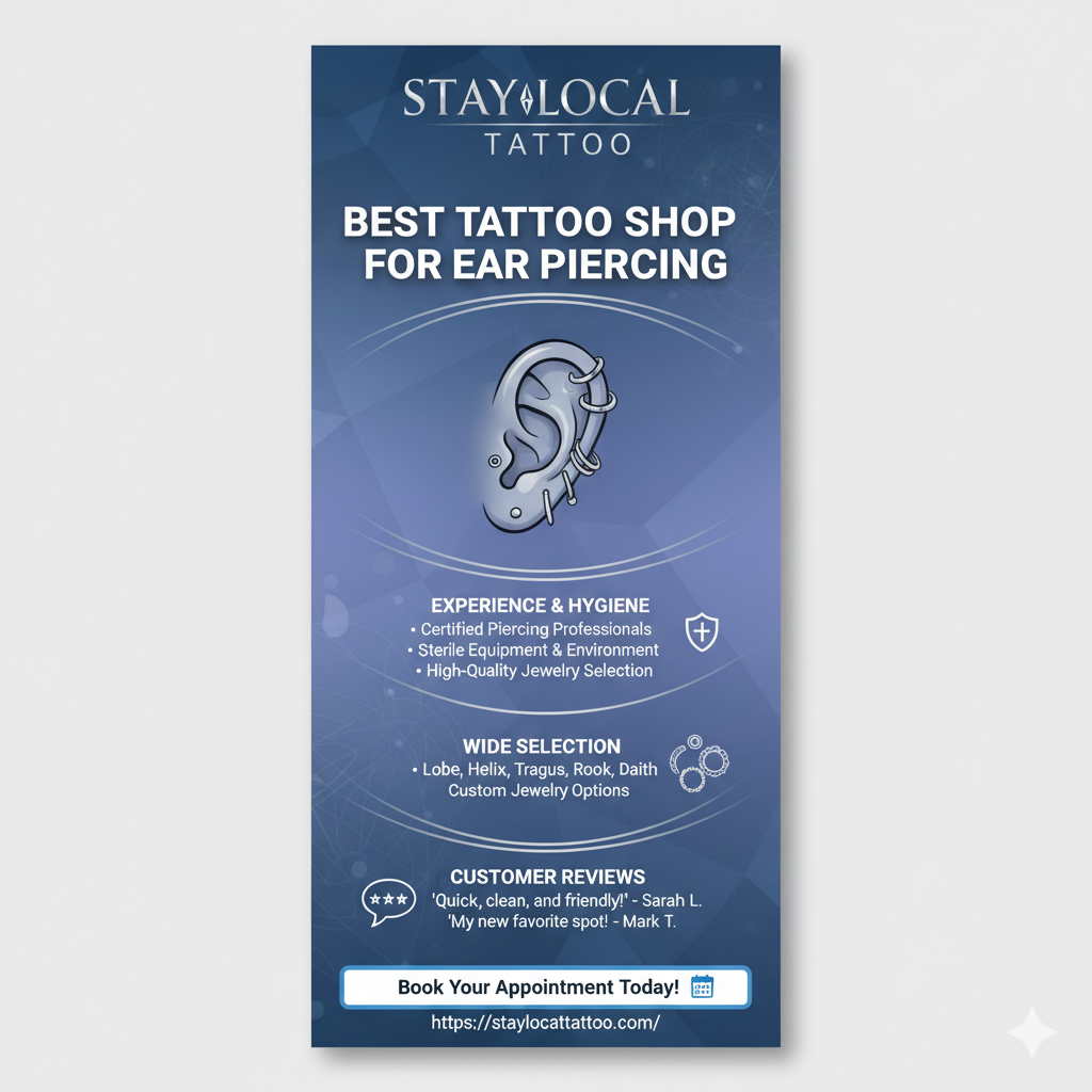 Need a trusted place for ear piercing? Stay Local Tattoo provides safe, hygienic, and professional piercing services with licensed specialists in Wheat Ridge.