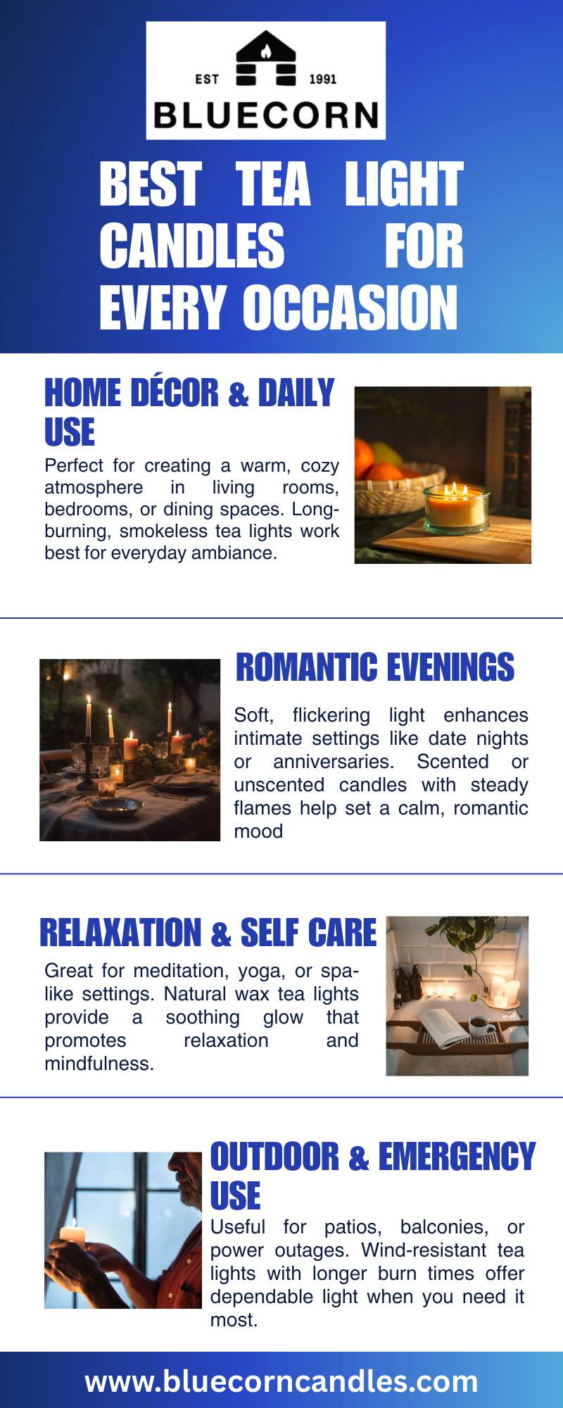 The best tea light candles for every occasion — long-lasting, clean-burning, and beautifully glowing options to set the perfect mood anytime! Visit us: https://bluecorncandles.com/