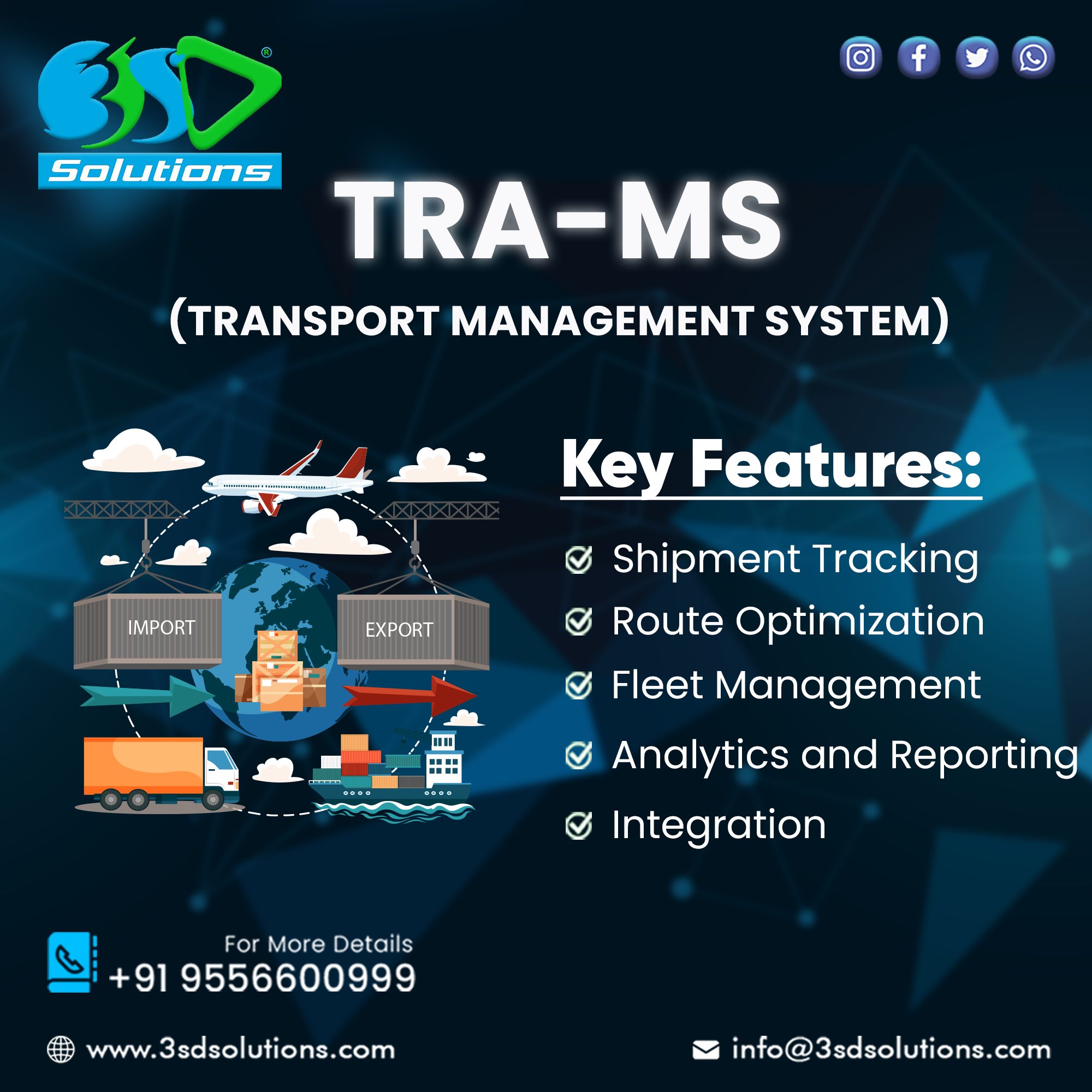 The 3SD Transport Management System (TRA-MS) is a comprehensive software solution designed to enhance transportation efficiency. Developed by industry experts, TRA-MS streamlines various aspects of transportation, making it easier and more effective.