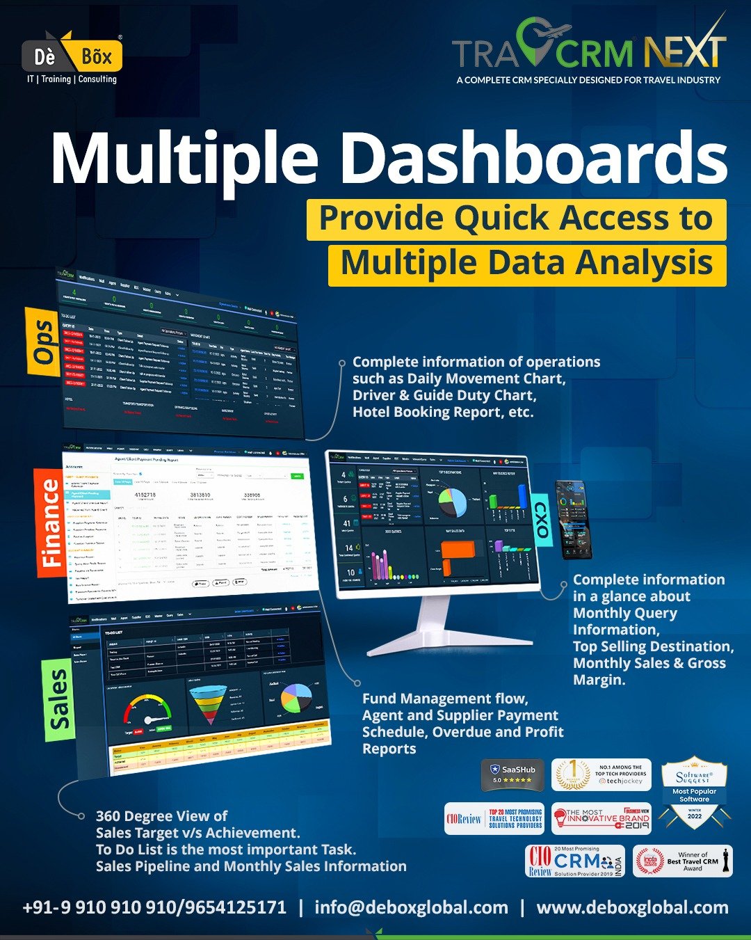 From lead management to analytics, Best travel CRM has you covered. Stay ahead in the competitive travel market and unlock the true potential of your business with the best travel CRM by DeBox Global.