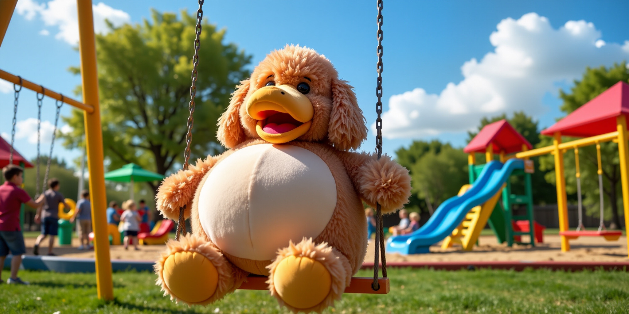 Big Belly Bob BBB a plush labradoodle with absurdly large spherical belly usually sitting like a ted