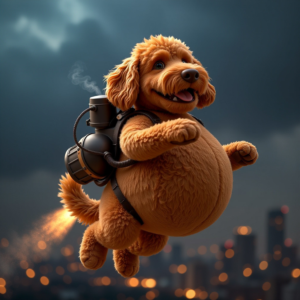 Big Belly Bob BBB a plush labradoodle with an absurdly large spherical belly now equipped with a tin