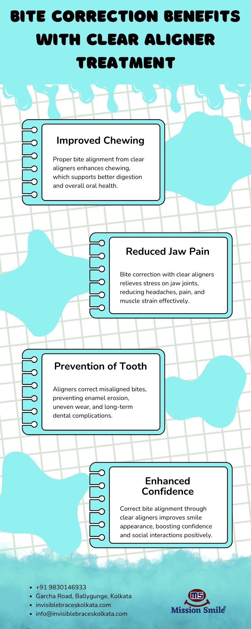 Achieve a healthier bite and confident smile with advanced orthodontic solutions. The top-rated clear aligners in Kolkata offer comfort, discretion, and effective results. At Mission Smile Dental Centre, patients experience personalized treatment that corrects misalignment while enhancing oral health and overall appearance with lasting benefits.
