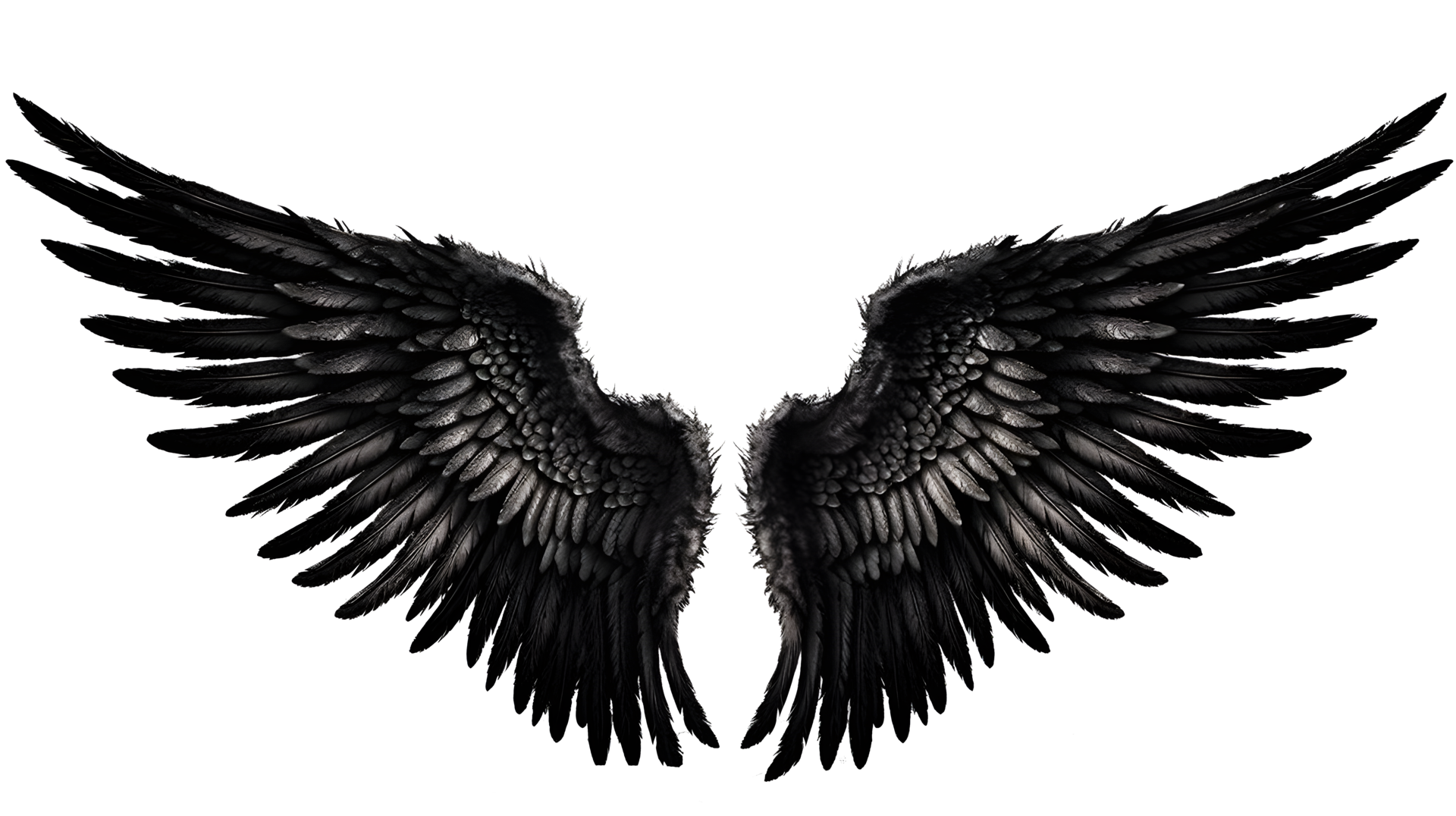 black angel wings ornament isolated on a transparent background generative ai png