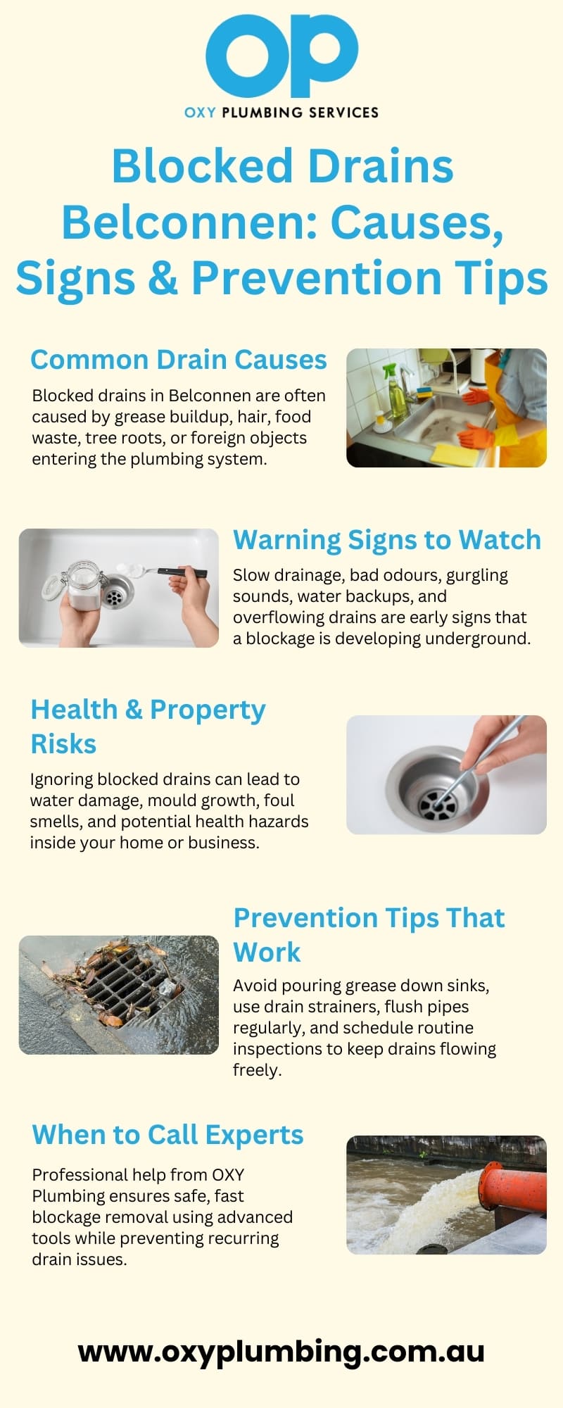 Your everyday routine can be severely disrupted by blocked drains, which can also result in unpleasant odours, sluggish water flow, and possible property damage. Expert solutions guarantee that the issue is found and fixed before it gets worse. Blocked Drains Belconnen services effectively and safely restore appropriate drainage using specialised equipment and tried-and-true methods. Early intervention safeguards your plumbing infrastructure, from outdoor stormwater systems to kitchen sinks. Selecting a reputable supplier like OXY Plumbing ensures dependable work, long-term outcomes, and peace of mind. Expert help guarantees that your pipes stay clear, functional, and long-lasting when Blocked Drains Belconnen problems occur. Visit Now, https://oxyplumbing.com.au/blocked-drains-belconnen/