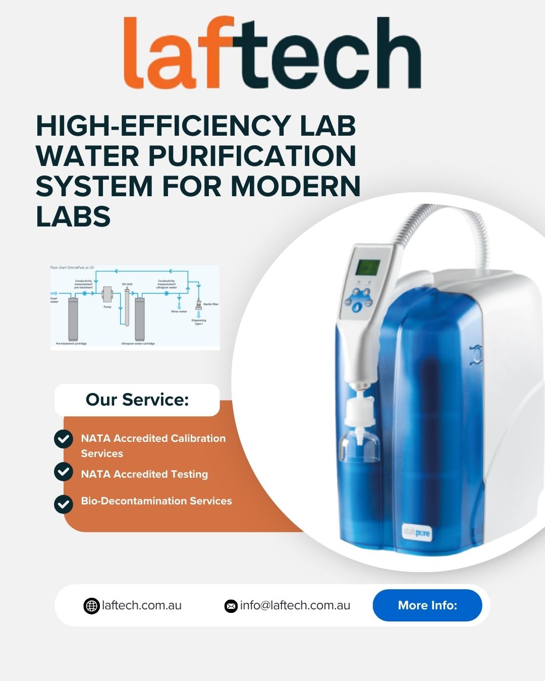 Buy Lab Water Purification System to achieve unmatched purity and dependable water supply in laboratory operations. The High-Efficiency Lab Water Purification System for Modern Labs is engineered for precision, long-term reliability, and contamination-free results. Trusted globally, L.A.F. TECHNOLOGIES PTY. LTD delivers superior technology to support critical testing and research environments.