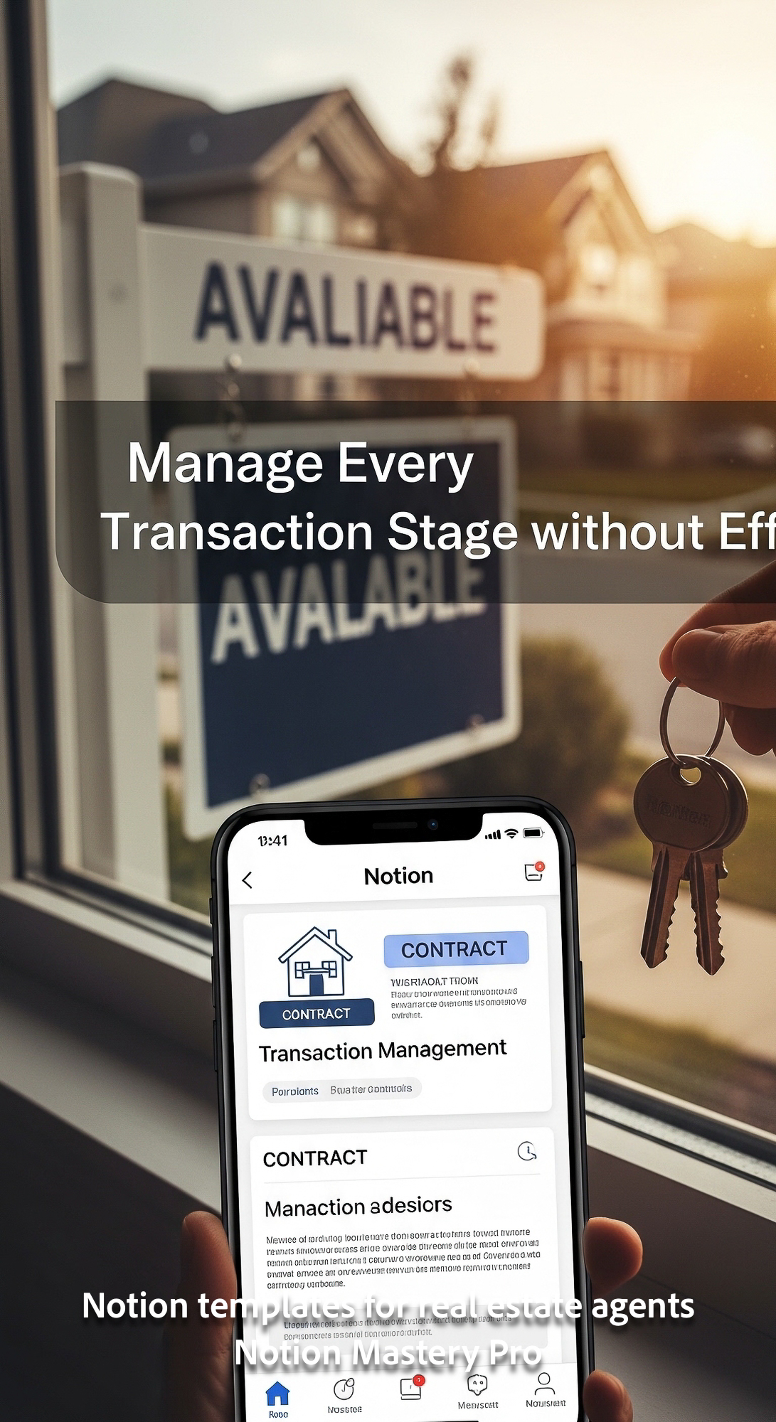 Blurred closeup of contracts keys and a Available sign in a suburban home window foreground smartpho