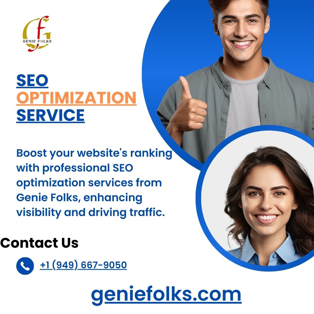 Improve your search engine rankings with professional SEO optimization services from Genie Folks! Our expert strategies drive organic traffic, enhance online visibility, and increase conversions. We specialize in keyword research, on-page and off-page SEO, technical SEO, and high-quality content optimization to help your website rank higher. Whether you’re a small business or a large enterprise, our customized SEO solutions ensure long-term success.