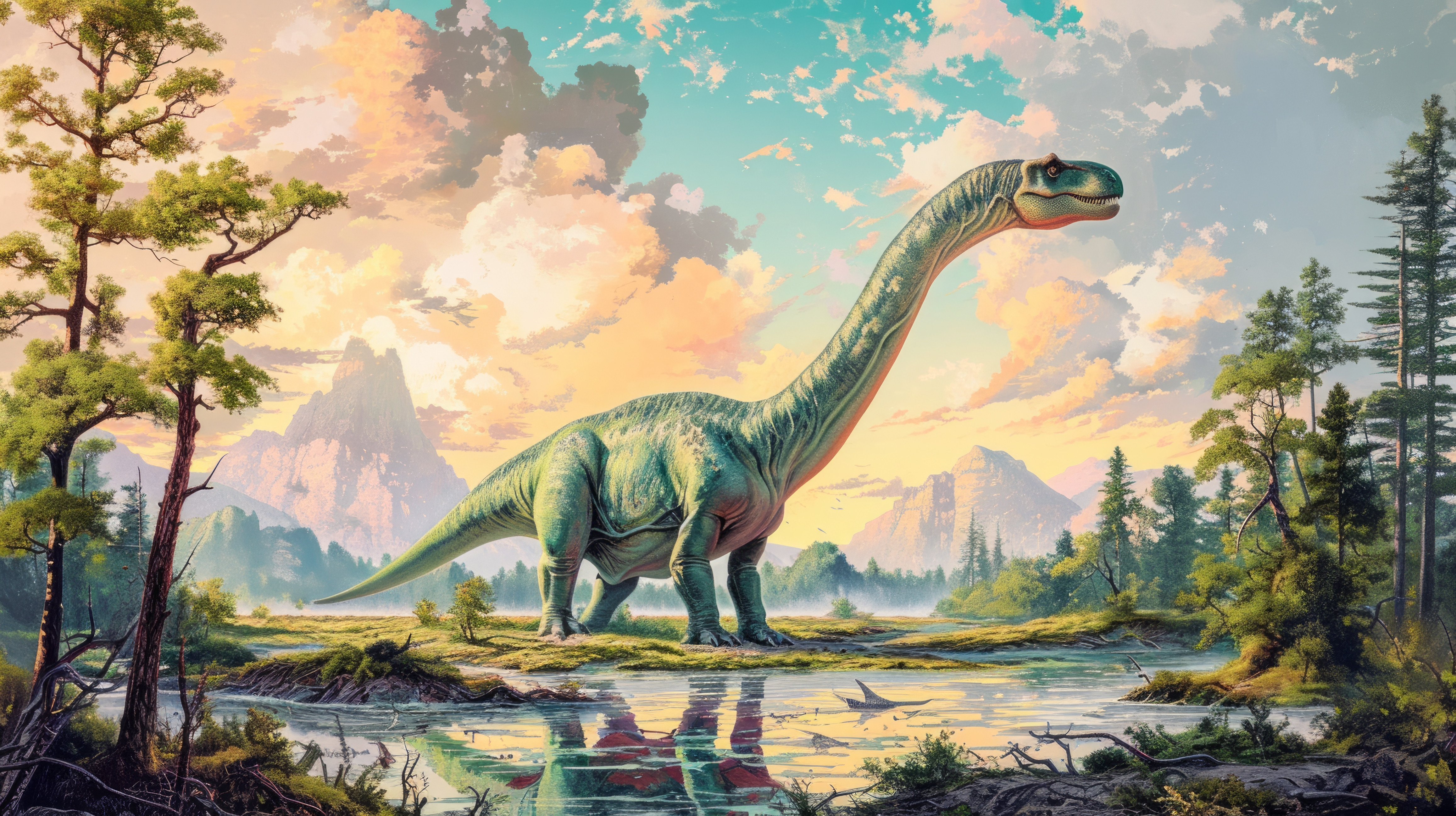brachiosaurus pastel color illustration wallpaper white border edges amazing focus ar 169 00009 01