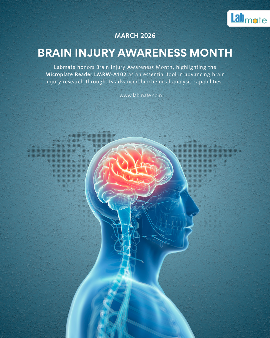Labmate recognizes Brain Injury Awareness Month, highlighting the role of the Microplate Reader LMRW-A102 in supporting biochemical assays used in neurological and brain injury research laboratories. The system assists laboratories in analyzing biomarkers and cellular responses involved in brain injury studies.