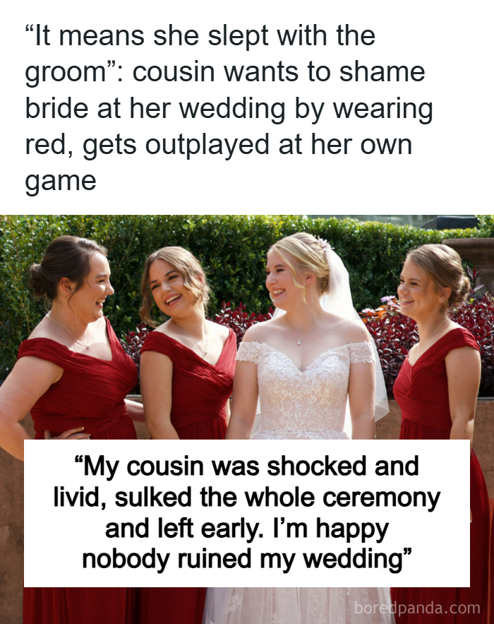 bride gets revenge cousin plan wear red on wedding