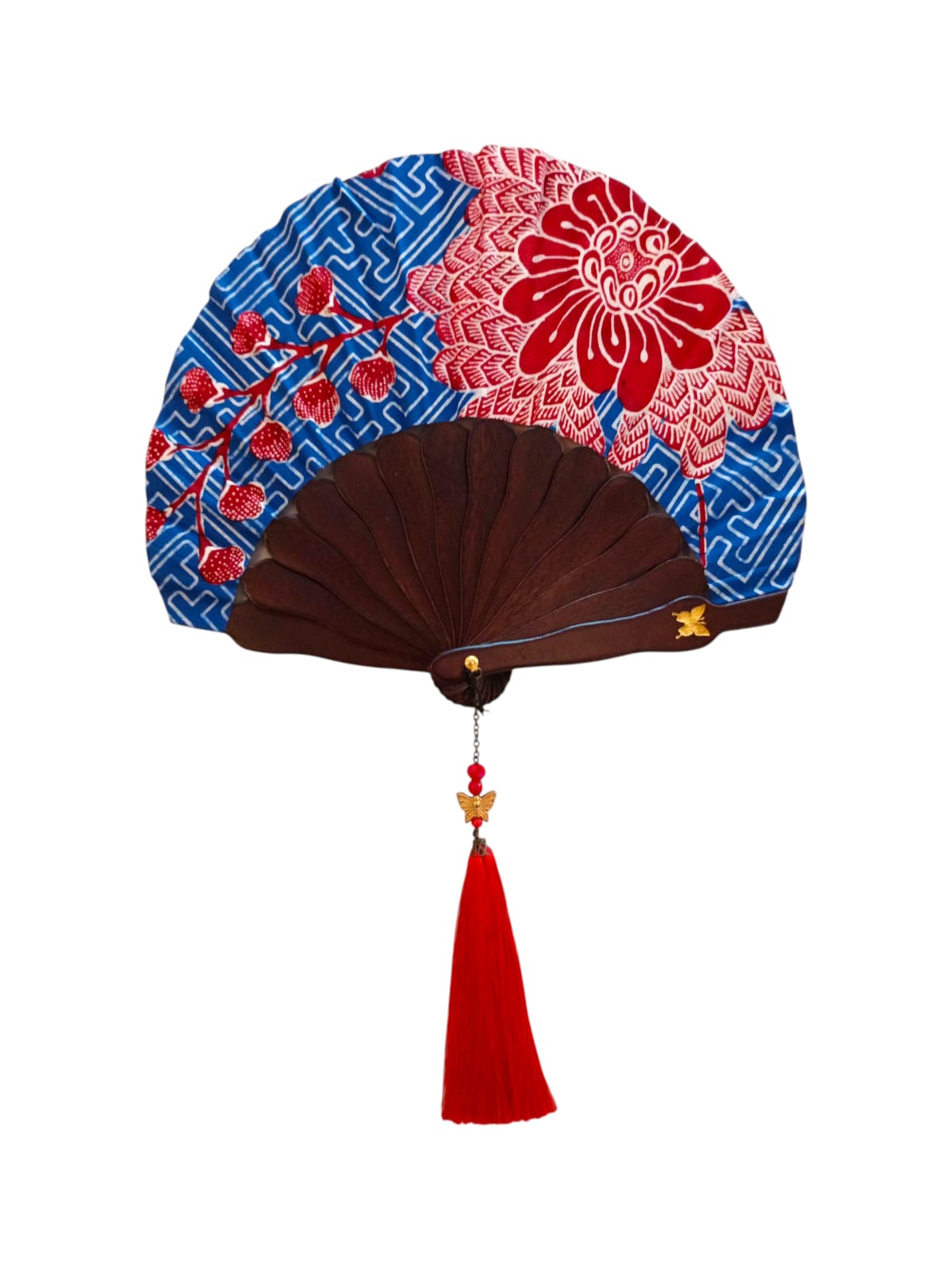 Bundar Batik 23cm Biru Tua Bunga Putih