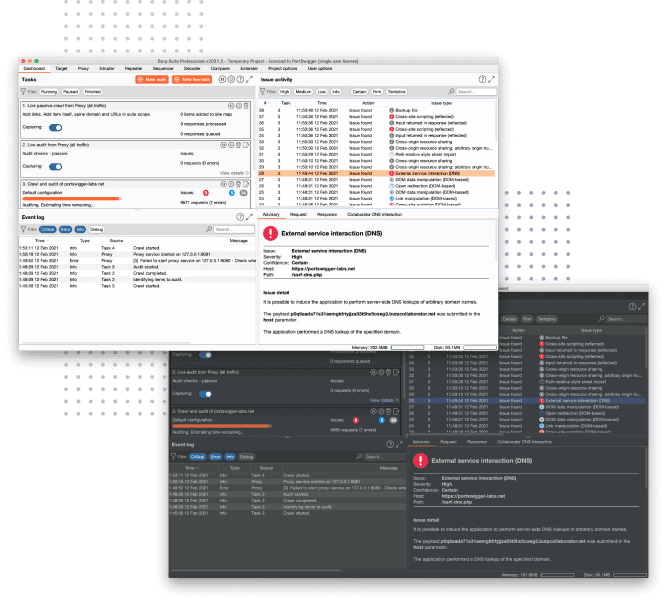 burp suite dashboard screenshots