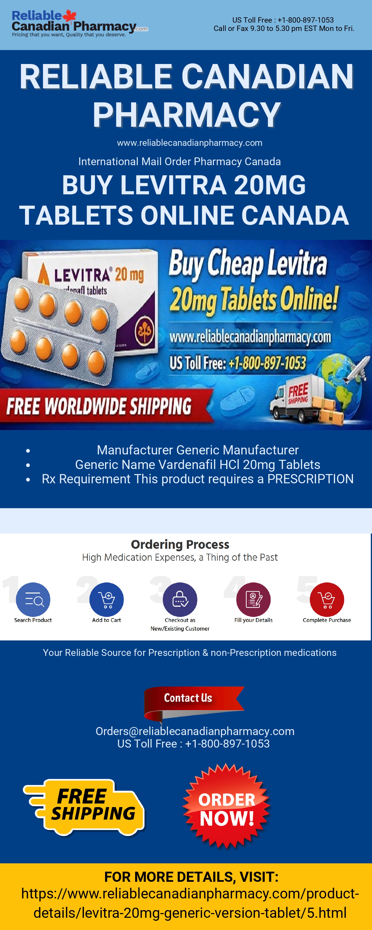 Levitra tablet is a prescription medication used to treat erectile dysfunction (impotence) in men. Buy Levitra 20mg tablets online in Canada from Reliable Canadian Pharmacy at vert lowest prices with free worldwide shipping. For more details, visit: https://www.reliablecanadianpharmacy.com/product-details/levitra-20mg-generic-version-tablet/5.html