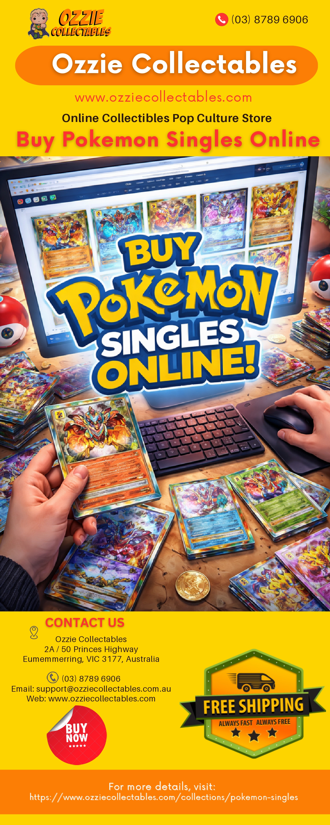 Ozzie Collectables helps fans buy Pokemon singles online with simple steps and good prices. Explore Pokemon Singles Australia choices, plus worldwide shipping, so collectors everywhere can get favorite cards quickly today easily. For more details, visit: https://www.ozziecollectables.com/collections/pokemon-singles