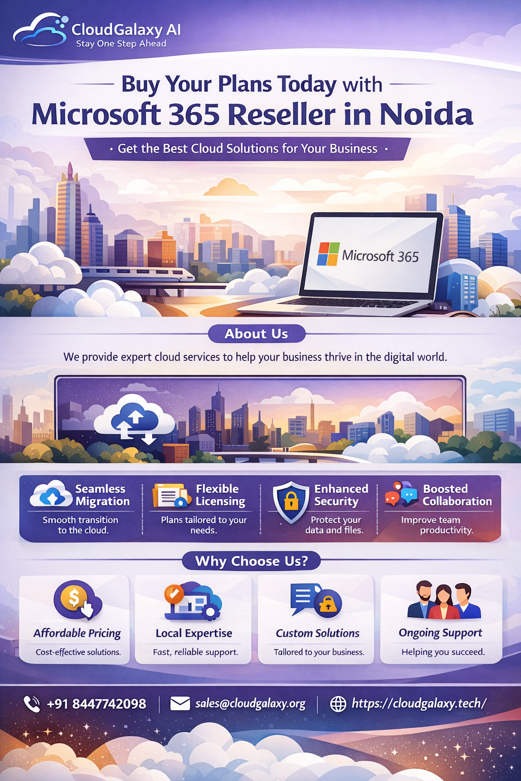 Empower your business with secure, scalable cloud solutions designed for modern workplaces. Partner with a trusted Microsoft 365 Reseller in Noida to enjoy seamless migration, flexible licensing, advanced security, and enhanced collaboration tools that boost productivity and support long-term digital growth. Visit - https://cloudgalaxy.tech/microsoft-office-365-reseller-in-noida/