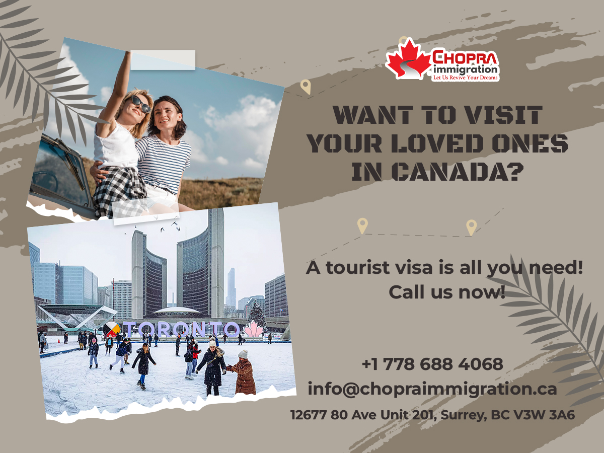 Need to visit your family in Canada? With a tourist visa, you can now travel and make amazing memories with your loved ones! Get in touch with Chopra Immigration for hassle-free services and experience the beauty of Canada today!