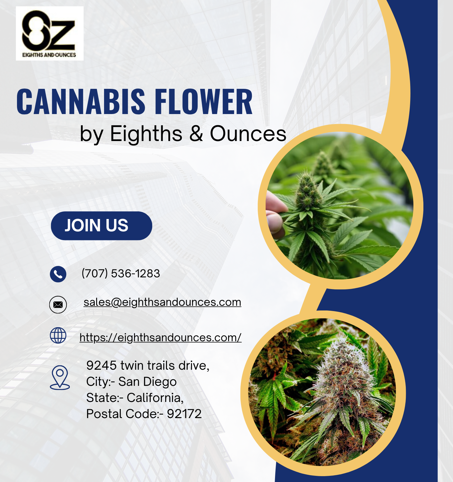 Breathe in happiness. We, Eighths & Ounces, offer hand-select fragrant Cannabis Flower for connoisseurs who appreciate quality and utmost care. Just browse through new strains and find your favorite aroma! For more information you can visit our website https://eighthsandounces.com/ or call us at (707)536-1283