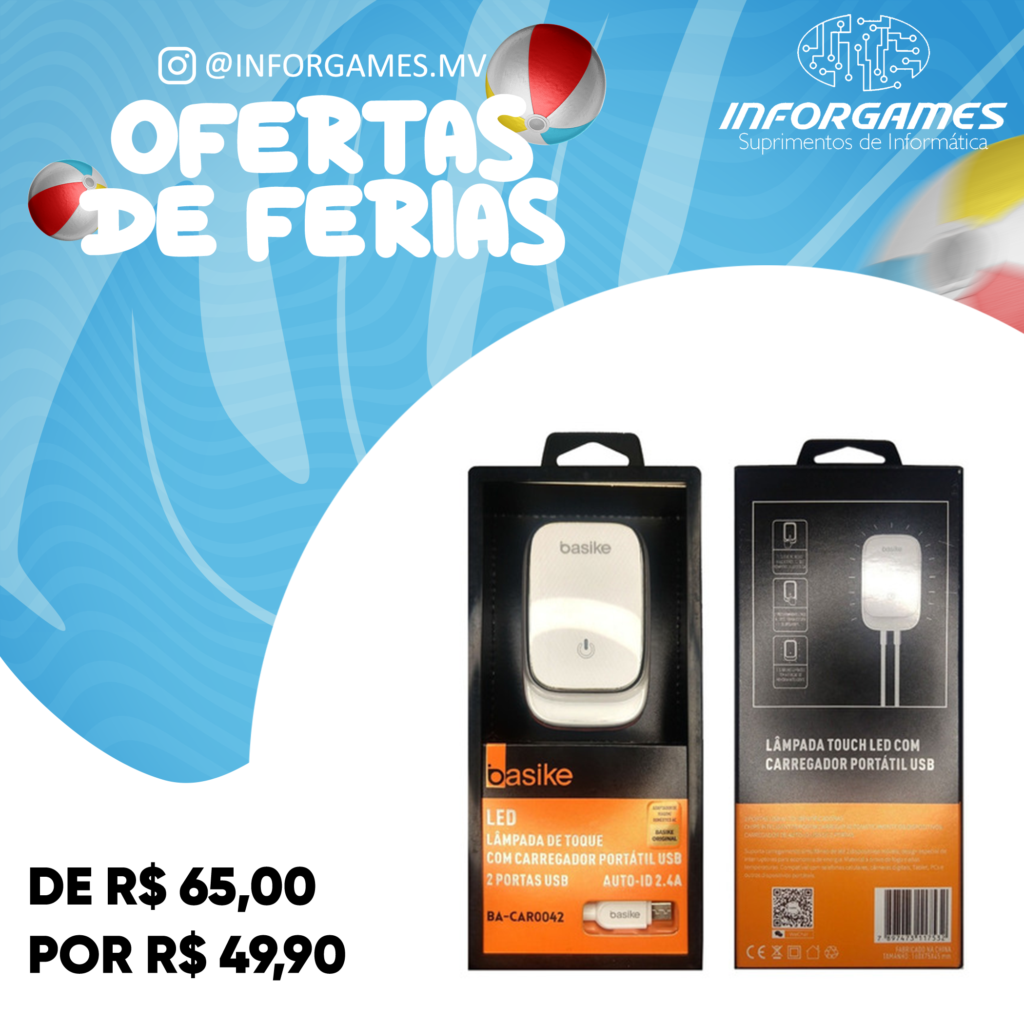 Carregador p iphone com lanpada de toque