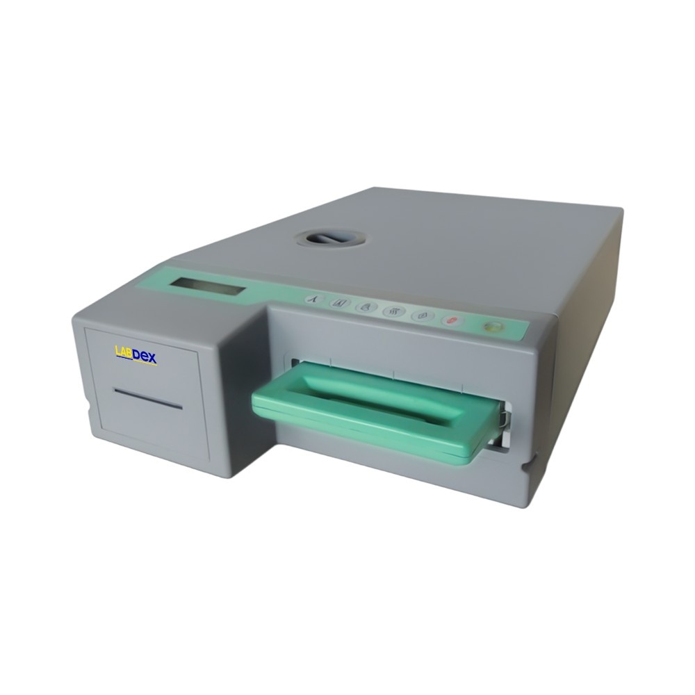 Labdex Cassette Autoclave is a compact laboratory sterilizer for rapid processing of small instruments in dental, ENT, ophthalmology and gynecology units. It offers selectable 115–135°C cycles, smart water and safety alarms, quick programs, thermal printing, and portable design for efficient workflows.