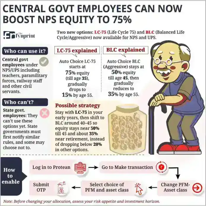 After years of waiting, central government employees—from Central Reserve Police Force (CRPF) and Border Security Force (BSF) personnel to teachers in Kendriya Vidyalayas, railway staff, and bureaucrats—can now access LC75 and Balanced Life Cycle (BLC) investment options in their National Pension System (NPS) and Unified Pension Scheme (UPS) accounts.