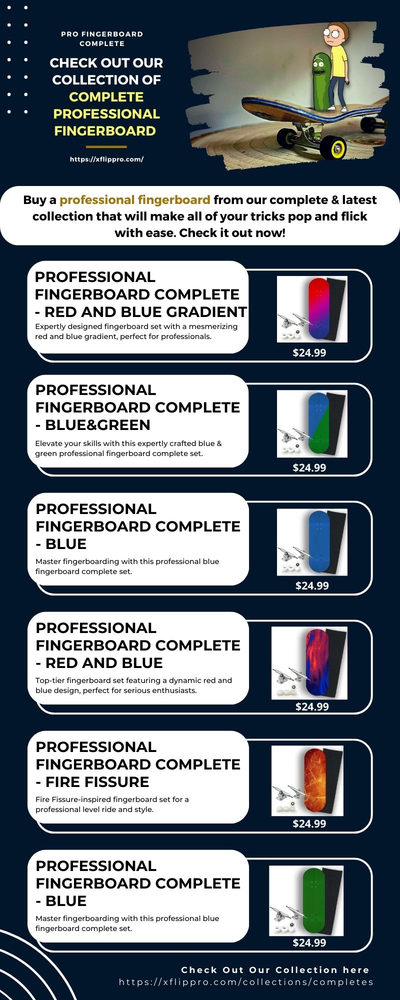 Buy a complete professional fingerboard from our latest collection that will make all of your tricks pop and flick with ease. Check it out now! https://xflippro.com/collections/completes