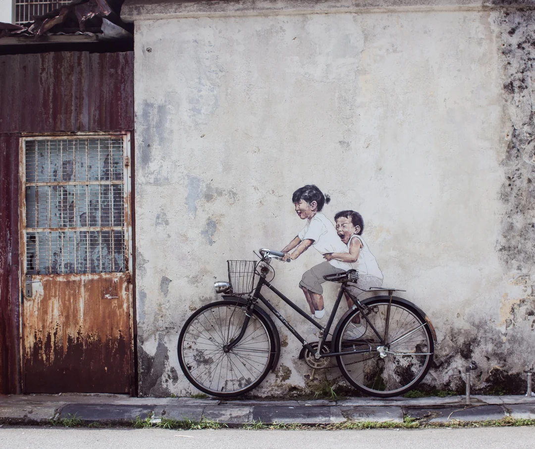 children on bicycle mural by ernest zacharevic 2012