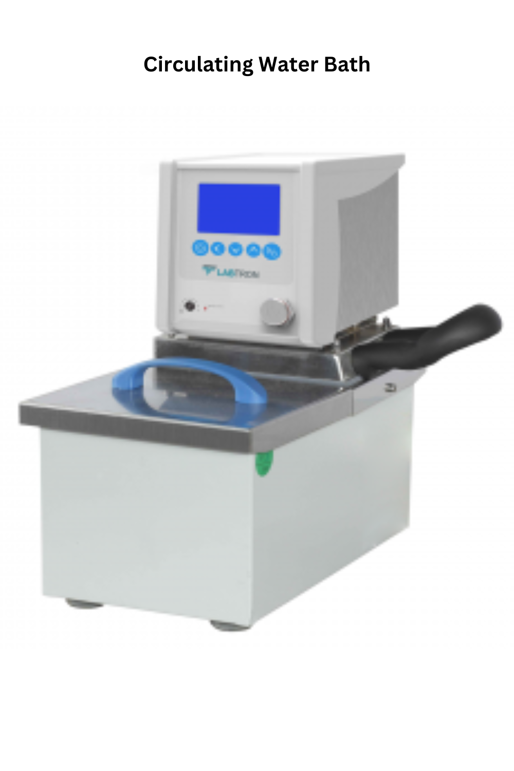 Labtron Circulating Water Bath is a 6.7 L benchtop unit with a temperature range of RT +5 to 100°C and ±0.1°C precision. It features a powerful pressure suction pump, PID microprocessor control, and interfaces for external baths. It supports pure water, mineral oil, or antifreeze and includes an audible and visible alarm for precise operation.