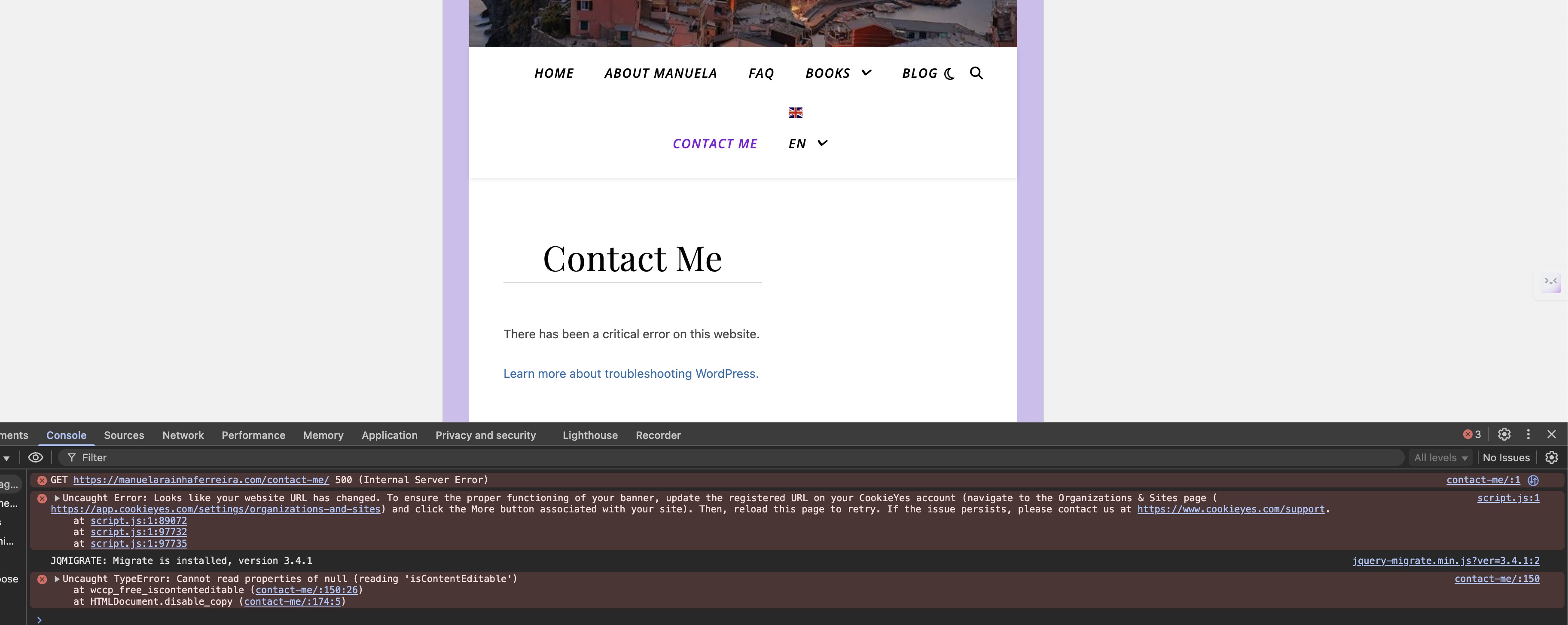 Check the error report for more information.