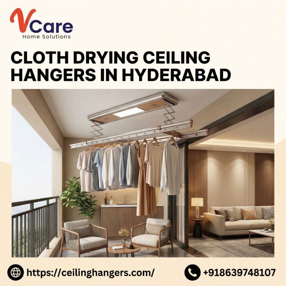 Get the best cloth drying ceiling hangers in Hyderabad for efficient space management. These durable and rust-resistant systems are perfect for balconies, utility areas, and indoor use. With smooth pulley operation, they make drying clothes simple and hassle-free. Ideal for apartments and homes, they ensure neat organization, better airflow, and long-lasting performance. Book installation today.