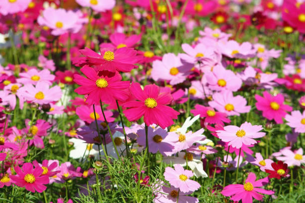 Colorful flowers blooming background, Mexican Aster flower at Chiang Mai Flower Festival,Held in Fe