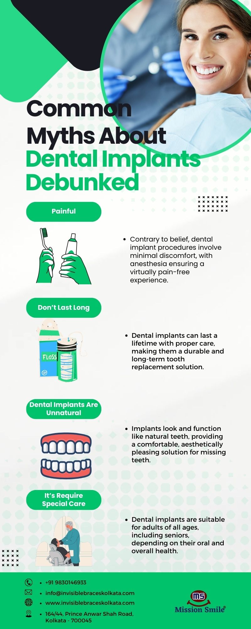 At Mission Smile Dental Centre, we offer top-tier dental implant Kolkata services designed to restore your smile and confidence. Our state-of-the-art technology and expert team ensure that you receive the highest quality care. Experience the benefits of dental implants with personalized treatments tailored to your needs. Trust us to provide durable, natural-looking results for a flawless smile.