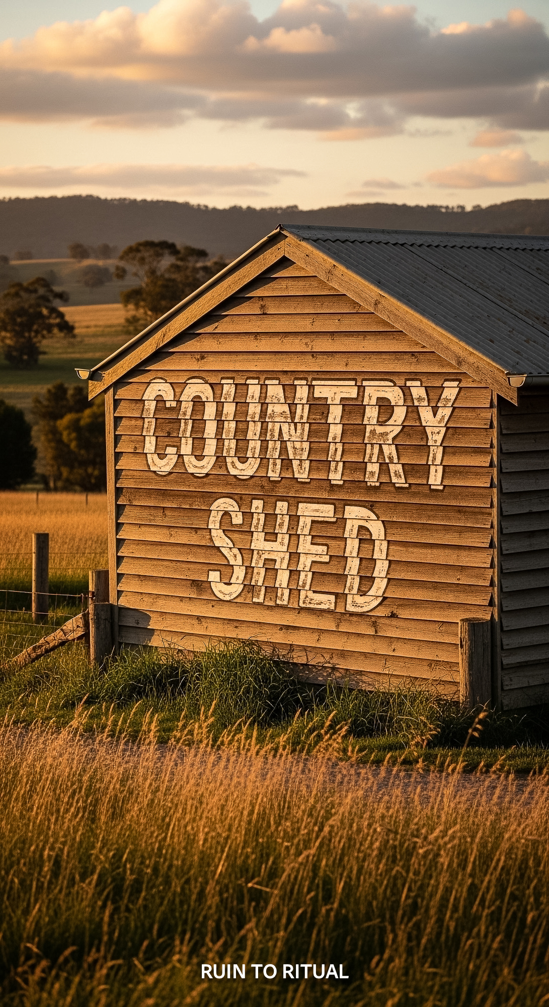 Container shed with rustic timber text overlay Country Shed