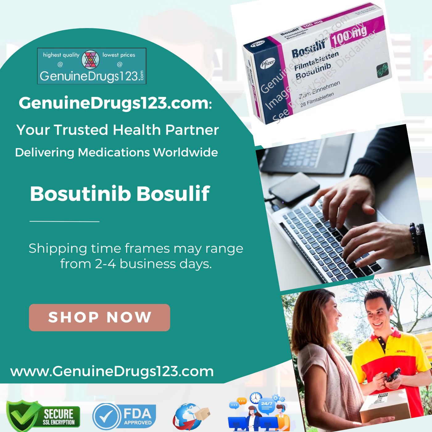 GenuineDrugs123 understands the crucial role affordability plays in accessing essential health products like Bosutinib (Bosulif). We prioritize providing cost-effective options without compromising on quality or authenticity. Our commitment to accessible healthcare means offering Bosutinib (Bosulif) at competitive prices, ensuring patients can afford the treatment they need without financial burden. Through stringent quality checks and reliable sourcing practices, we guarantee genuine products that meet stringent safety standards.
