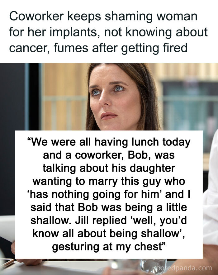 coworker insult chest implant sharing