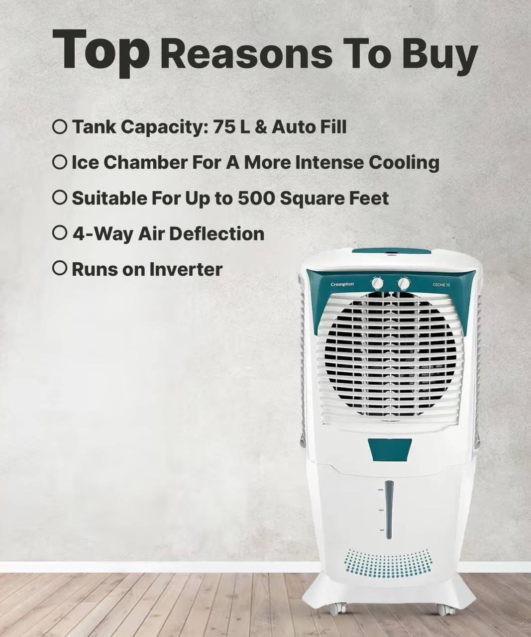 Crompton 75 L Desert Air Cooler White Teal ACG 4