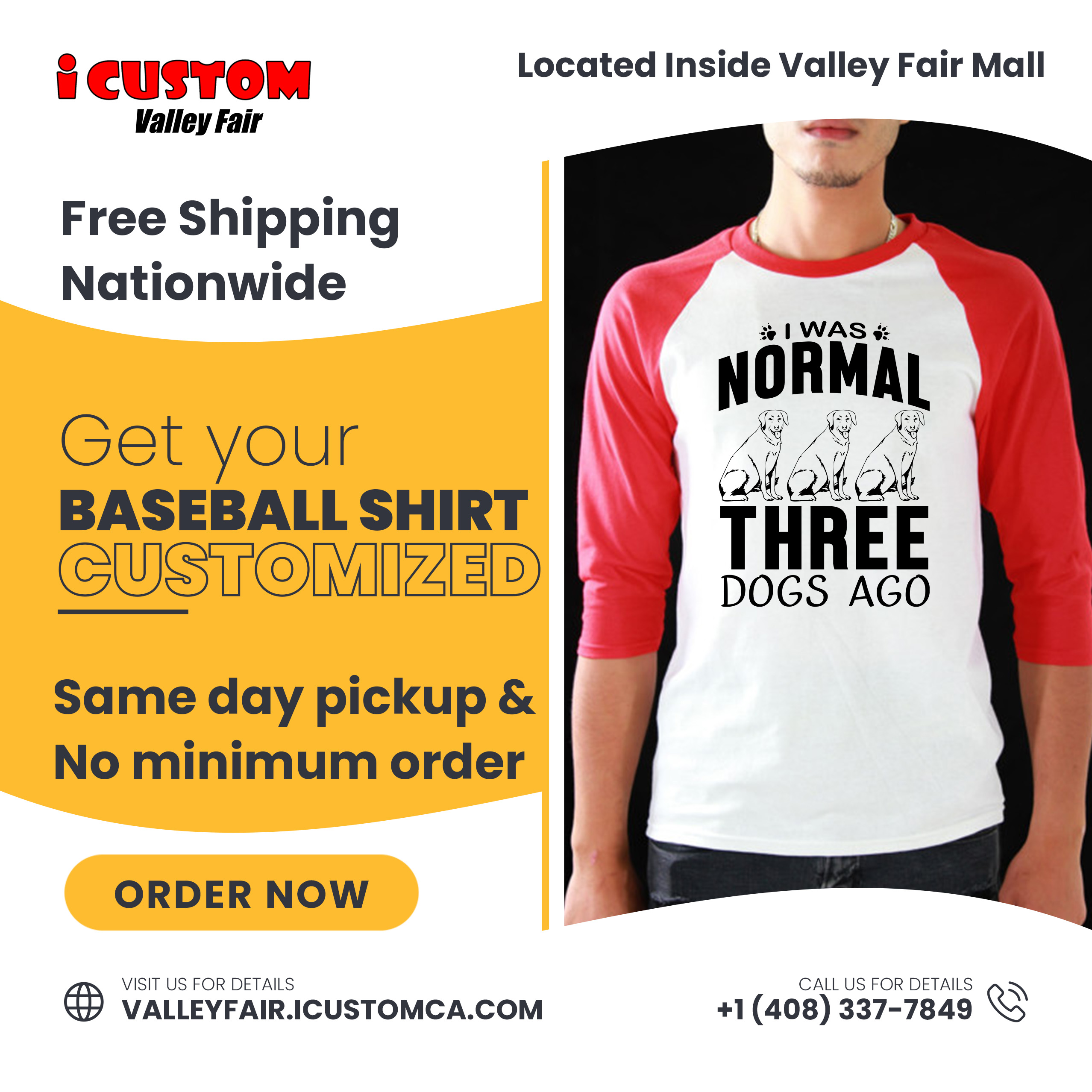 Show your team support while looking cool with a custom-made baseball t-shirt. Get yours today at the iCustom Valley Fair and stand out from the crowd!